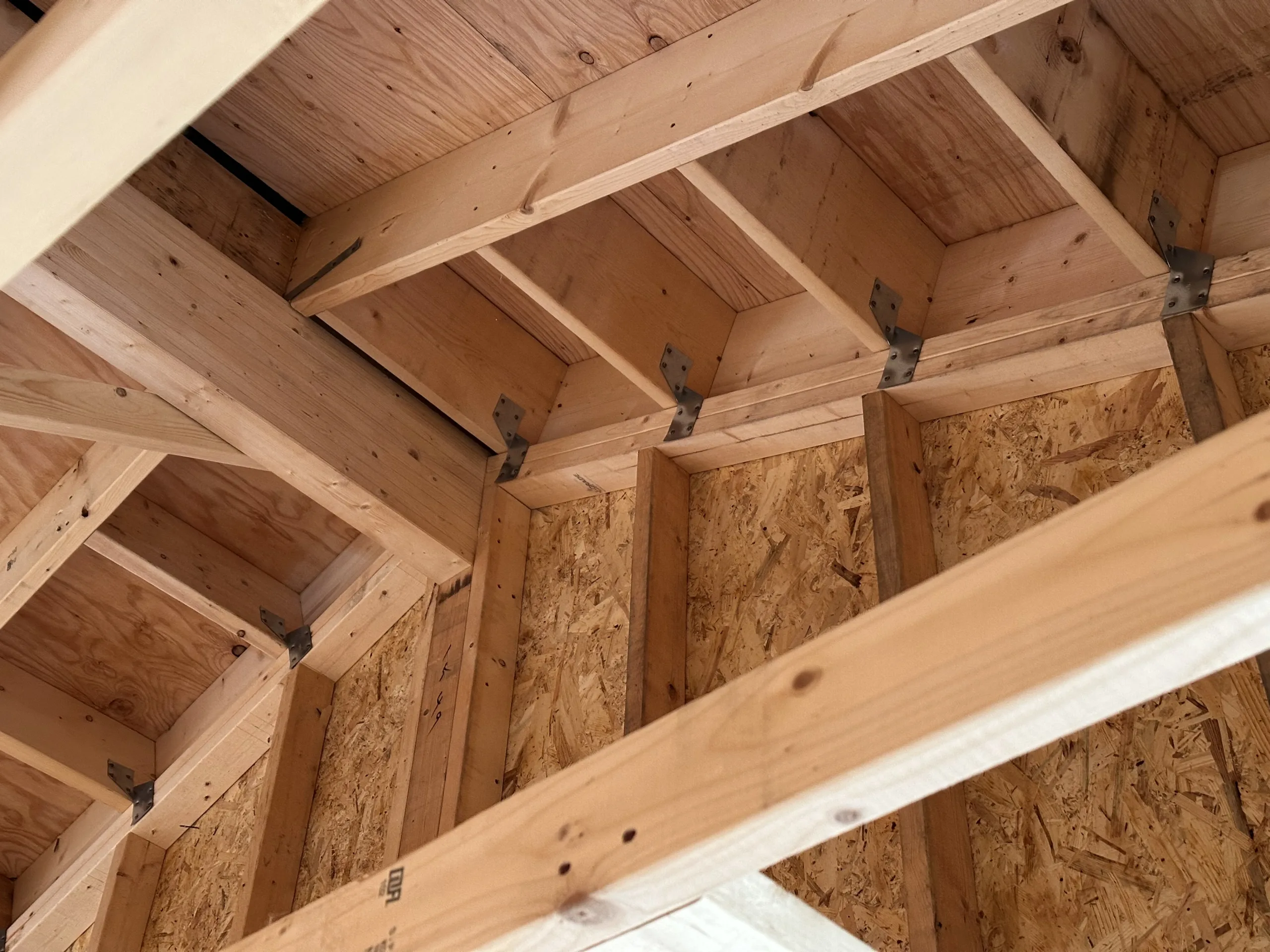 続いて外壁下地木材と軒天板の施工が行われています。
