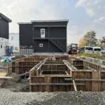 基礎工事が始まっており、現在布型枠の打設後養生中です。
